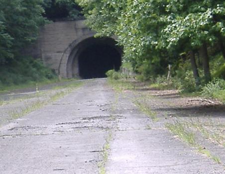 See, unlike at the Sideling Hill Tunnel, no concrete curb median at the tunnel mouth. Like at the other tunnel, though, not a trace of the original tunnel name above the mouth of the tunnel.