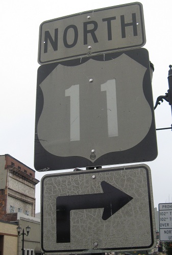 The nuns at Lourdesmont (well, it was founded by one, anyway) can cook up a mean old sign, but they can't make it far enough north to right this wrong. Then, continuing northwest on US 11/6, this signal sign isn't missing a screw, it was purposely installed that way.
