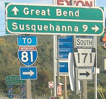 NB and SB, respectively, just west of the beginning of PA 171, which ends at I-81. The SB photo was obviously taken at a different time, and judging from the state name on the 81 shield, you can tell it's older.