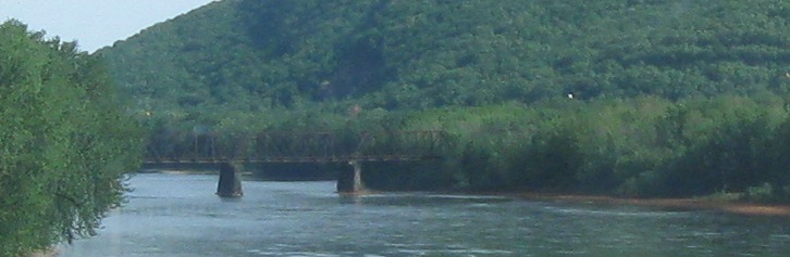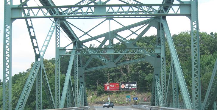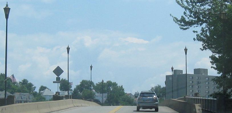 NB across the Fort Jenkins Bridge in Pittston and looking west at the Water St. Bridge.