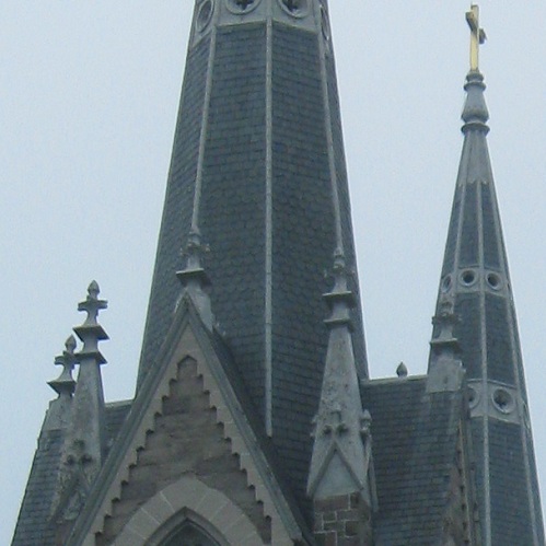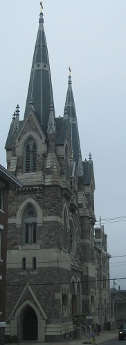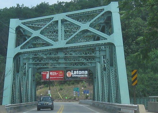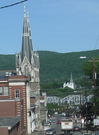 SB through Pittston to West Pittston, showing that the Fort Jenkins Bridge is more interesting than you think (it's even better from the side). The Water St. Bridge is to the east, but there's an old railroad truss to the west as well. For the first time ever, I offer you a closeup of a non-roads photo - click on the second picture (the church) to see a larger, more detailed version.