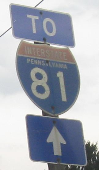 Continuing north with two more of Lou's photos, NB past an old sign with outdated arrows at PA 997 to an old sign with an arrow well past its prime on the ramp to the PA Turnpike. It doesn't look like the EAST and the I-76 shield were born at the same time - actually, the state-name shield looks newer than its banners.