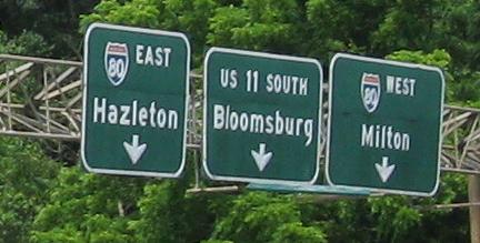 NB from Berwick to Shickshinny, second photo at the split from PA 93 SB. The Nescopeck sign belongs on 93 because US 11 never enters that town. Moral to Sam and his aggregate - don't mess with history.