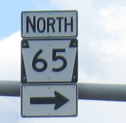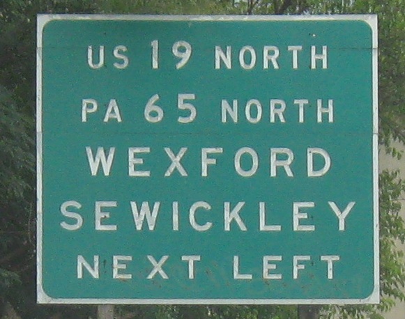 If I fork right instead of merging with PA 65 SB, I instead merge with Beaver Ave. and pass these signs. The West End Bridge looms in the background.