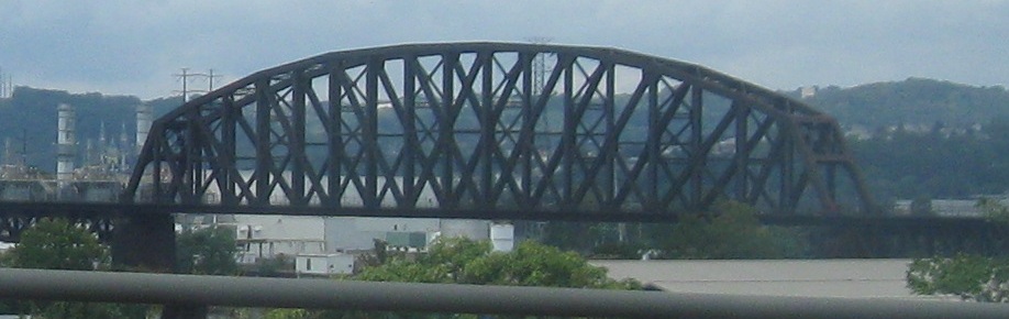 Look west from California Ave. (the frontage road) as the ramp to PA 65 NB leaves and spy this pair of railroad bridges crossing the Ohio River via Brunot Island.