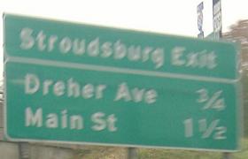 One SB photo along I-80 around Stroudsburg, one NB photo just after exiting. Why did PennDOT green out a perfectly good "s"?
