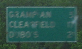 SB from Brockway to Dubois. The urgent message signs all seem to have state-name shields on them.