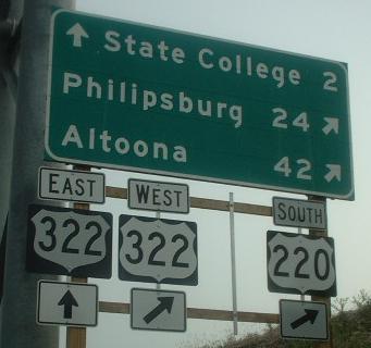 ![]() From Doug Kerr, on Park Ave. SB just north of State College, with room for a South I-99. If looks could kill... I-99 and US 220 (and US 322) US 220 from I-80 to I-180 I-180 and US 220 US 220 north of I-180 PA 150 (old US 220 and part of Alt. US 220) Original US 220 in Bald Eagle State Park |