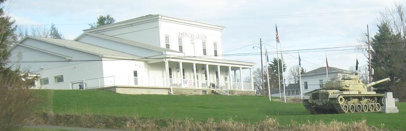 Right on the edge of town with its old keystone is this American Legion building dating back to the 19th century.