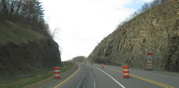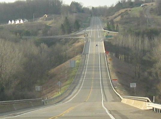 SB at Patterson Blvd. and continuing around Towanda. At the time, reconstruction of part of the highway let SB traffic drive on the NB side and stuck NB traffic on the old route through town. The new road is more scenic, but the old road may be more interesting: