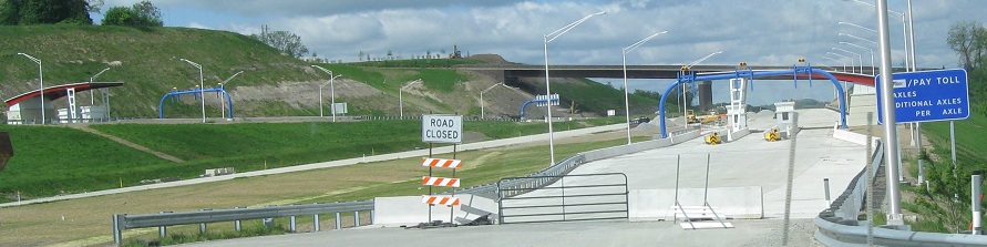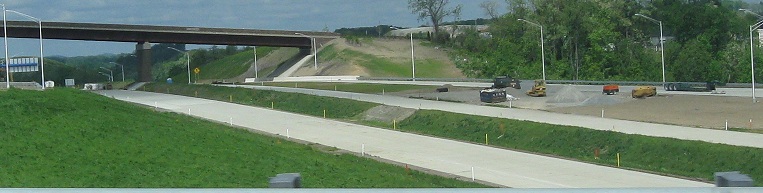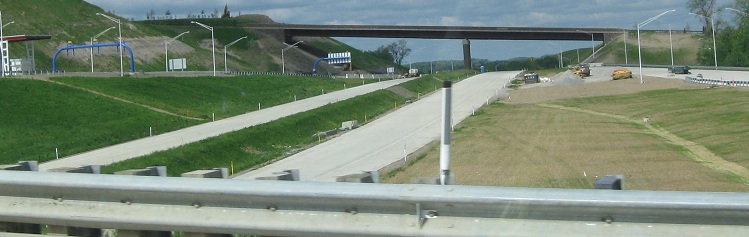 As US 40 curves around to cross WV 43, these photos look west at the unopen road. The piece west around Brownsville to PA 88 will open in 2012.