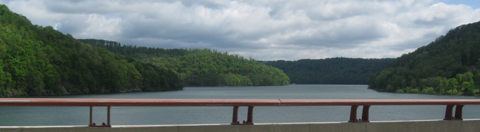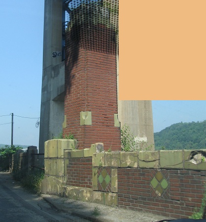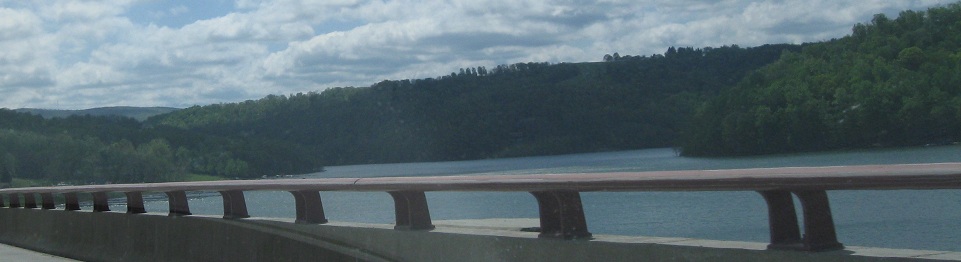 The Youghiogheny Reservoir is lovingly presrving this original National Road bridge. Photo courtesy Scott Sullivan, who tells me that the Army Corps of Engineers constructed the reservoir for the Pittsburgh area in 1940-41 due to the 1936 floods. Here, a very low tide combines with a drought to uncover a substantial portion of the bridge; don't expect to see anything there normally unless you're a professional diver or a scuba fan.