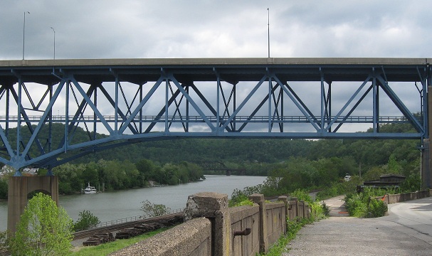 Looking south at what I believe is the original National Road bridge across the Monongahela.