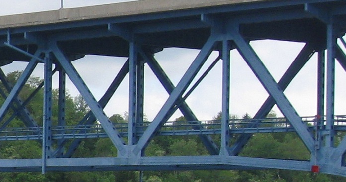 Looking north from Market St. along the Monongahela River. The bridge walk is for maintenance only, no tourists. Toward the left of the photo, the pipe stuck to the outside of the beams is for drainage.
