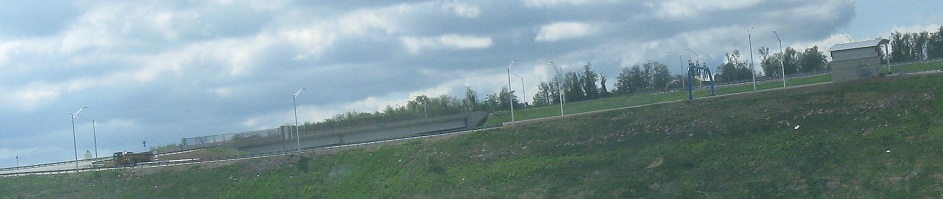 Looking west at PA 43 construction east of Brownsville. US 40 was recently extended east of PA 166 on Redstone Way, bypassing part of the old National Pike and bringing it directly across the route of PA 43. These are views of the future NB onramp and SB offramp, and the other half of this toll interchange is already functional (as of 2010-2011). Aerial photography has not yet caught up, so I don't know what the next overpass to the west is for - perhaps a pedestrian crossing, or maybe an entrance to a new development.