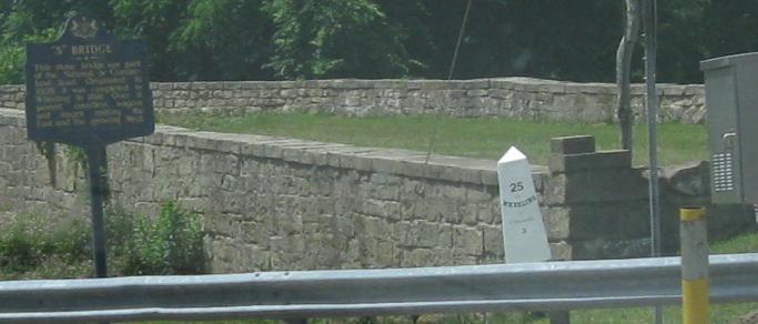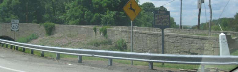 See, here's a great and lovingly preserved trace of the National Road, the "S" Bridge at PA 221. After driving west past it, I decided I had to stop for a closer look.