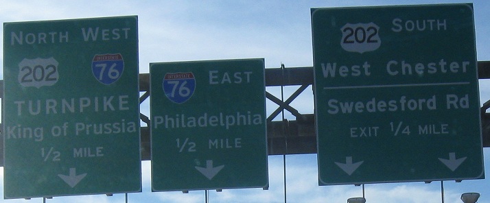 The eastern end of US 422, second photo courtesy Scott Colbert, with some off-center shields and ugly Clearview. The Turnpike shield masks I-276.