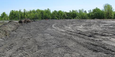 Looking east and west from a small street off of Montée de la Saline in Delson at the future Saint-Constant bypass being graded.