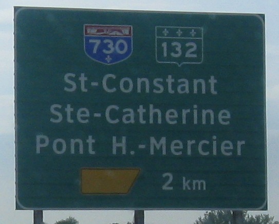 After A-30 was completed around Saint-Constant, because of the original plan to plow straight through, there were two dangling ends left on either side of the city. The western end became A-730, and the eastern end became A-930. I understand that most traffic to Montréal would have stayed on QC 132 in either direction, but with a huge city right there, how can it be completely ignored on signs?