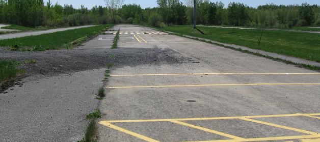 Well, visiting again in summer proved that conclusion. These photos look west on the completely paved EB mainline stub, with a stub frontage road to the left (see first photo) and the stub WB side (with both mainline and frontage road) most clearly visible in the third photo. As you can see, the province uses the EB lanes for paint testing, but the WB lanes are spared that fate.