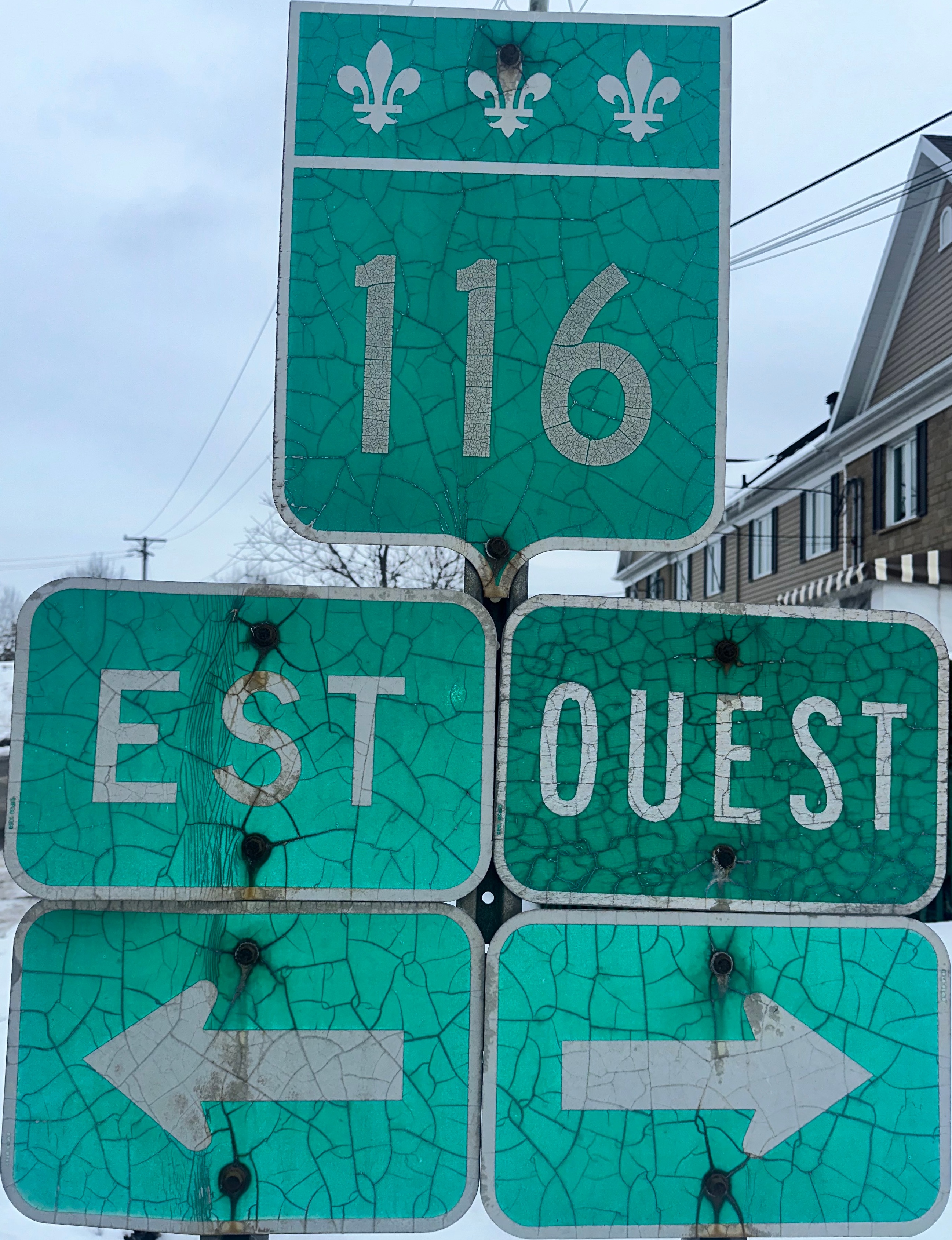 Ugly new shields in Val-Bélair, which just became part of Québec City in 2002 and thus needed to replace whatever was old and good to celebrate.