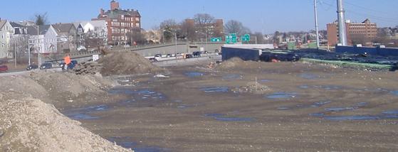 Looking west from the middle of the I-195 offramp and then from the middle of the I-195 onramp, with current I-195 on the right.