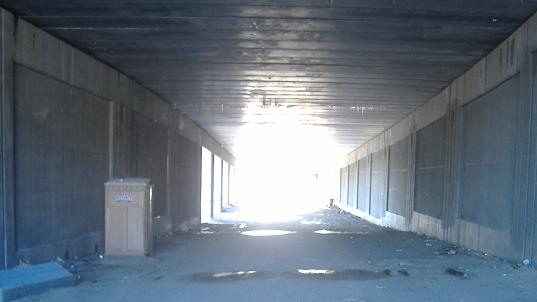 Now into the tunnel, walking the wrong way down the I-195 onramp toward a reconnected Benefit St. and then Main St.