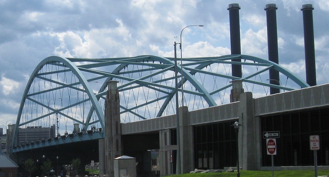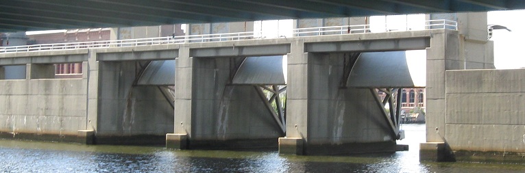 The Providence River Dam is just north of the new bridge and the new India Point Park (as of 2010, when the photos above were taken) is a perfect vantage point for it.