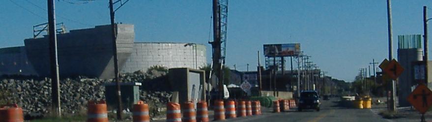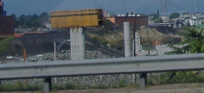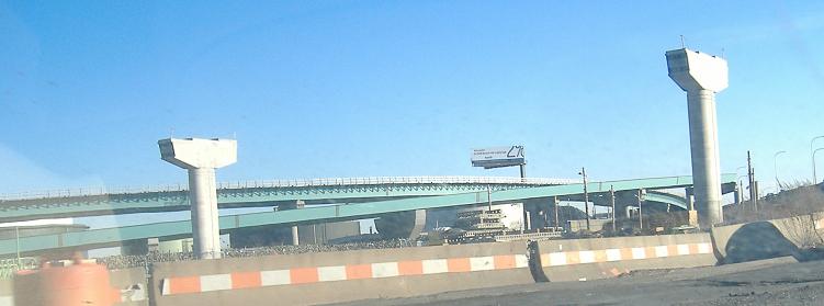 In the first photo, the back (mostly completed) ramp is from I-95 North, the second (incomplete) ramp is from I-195 to I-95 South, and the piers are for the I-95 South ramp to I-195 (carrying US 6 EB). The others are from a similar vantage point, all taken 2/16/07.