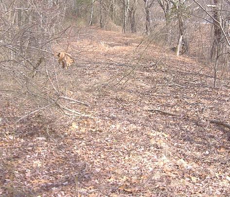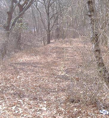 Looking back south toward my car parked in the southern stub; even though I'm only a few feet away, and even though the leaves aren't out yet, the underbrush is thick enough to obscure a 2-ton shiny blue object.