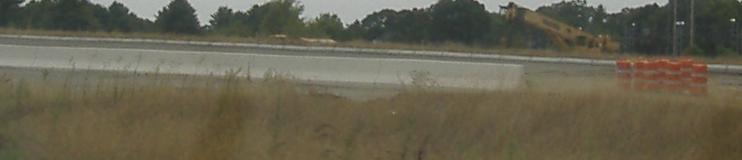 Glimpses of the eastbound, unopened lanes, east of US 1. Once the freeway is fully opened, there will be three WB lanes here, with only the right lane exiting for Davisville Rd, and there will be EB lanes flying over Roger Williams Way to end.