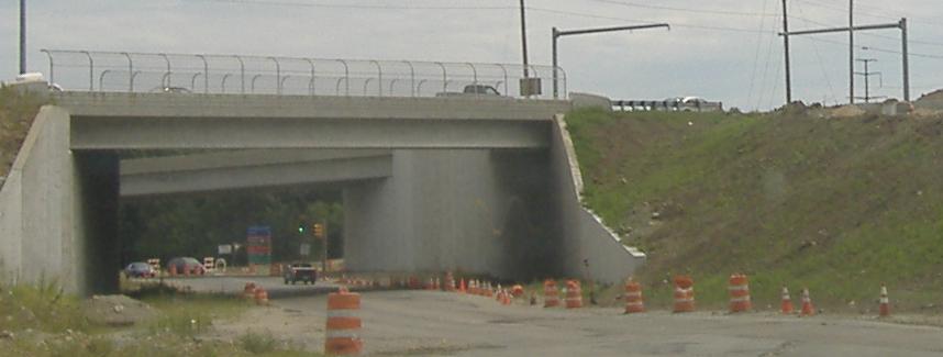 The overpass is already constructed over the Roger Williams Way extension that connects with US 1. This is the same road that I mentioned in the first photo as having been converted to one-way only from Gate Road, but recently, RWW was rerouted to end at US 1 in a modified T intersection.