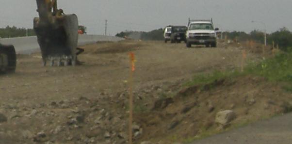 Looking westward along the under-construction freeway as the photographer (me) is forced off toward Davisville Road, which to the west becomes the current two-lane RI 403 (and was the original road through the area).