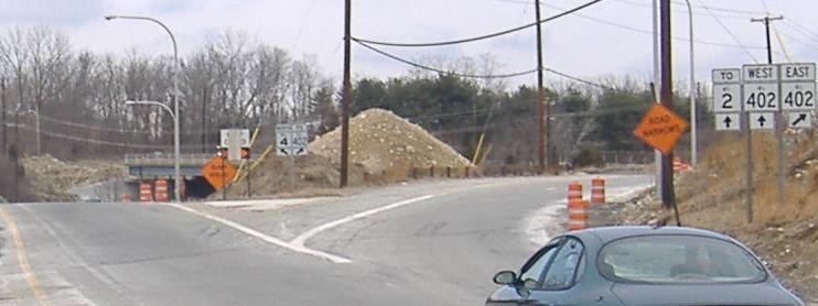 As of January 2007, RI 4 construction was serious enough to start to change the routings of RI 403 and RI 402, and the ramps linking all three highways. This is RI 403 WB where it basically ends.