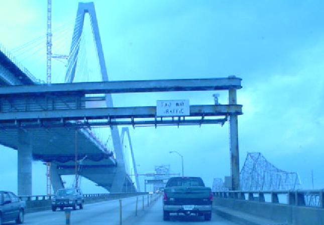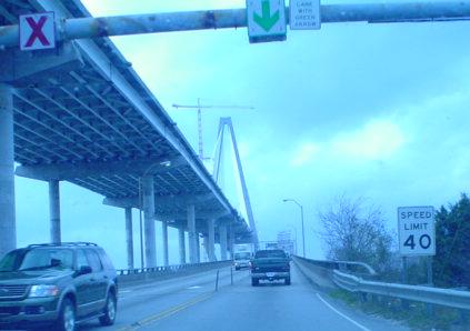 NB coming off the Grace Bridge, with the new Cooper River Bridge (not yet named at the time Lou took this photo) coming back in to the right.