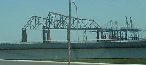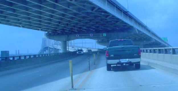In this photo, the new cable-stayed wonder is still unopened, and Lou is heading north onto the Pearman Bridge.