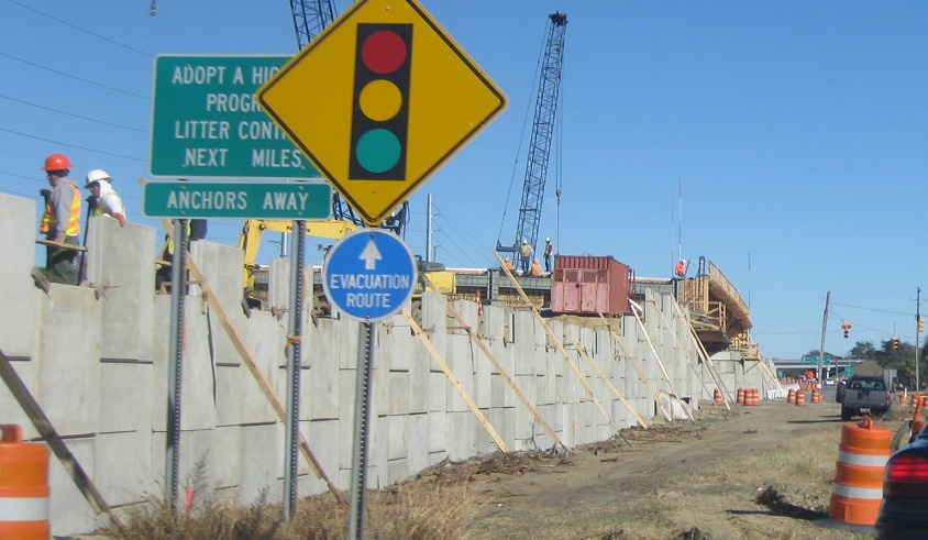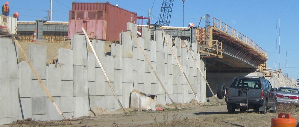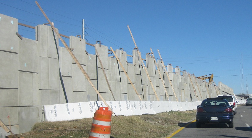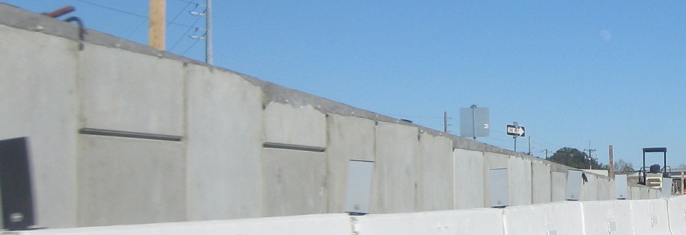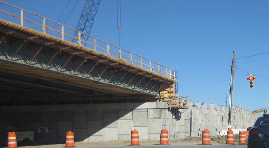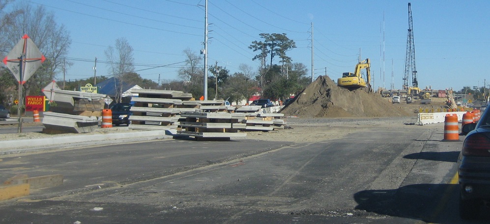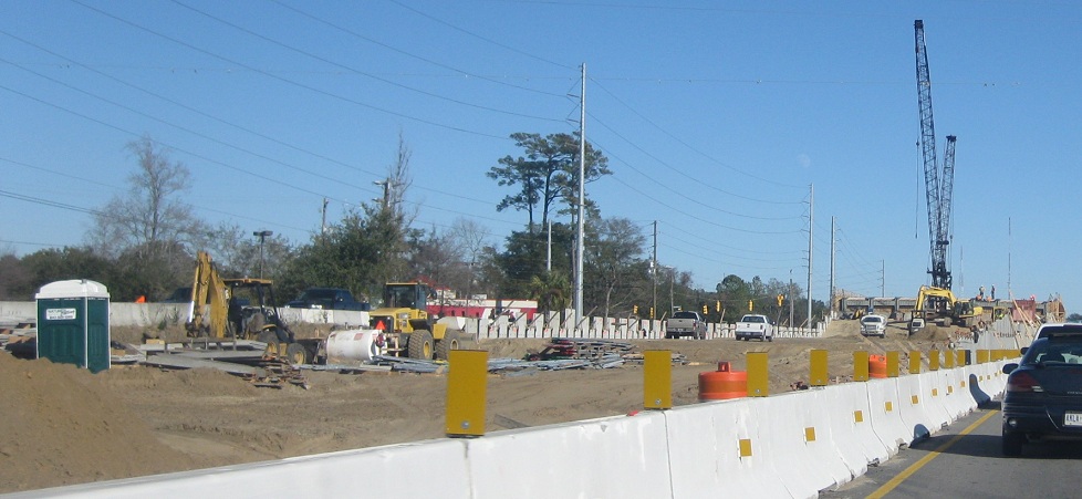NB through Bowman Rd. up to the eastern I-526 interchange during construction in January 2012. Wooden planks holding up concrete walls? Looks safe enough to me.