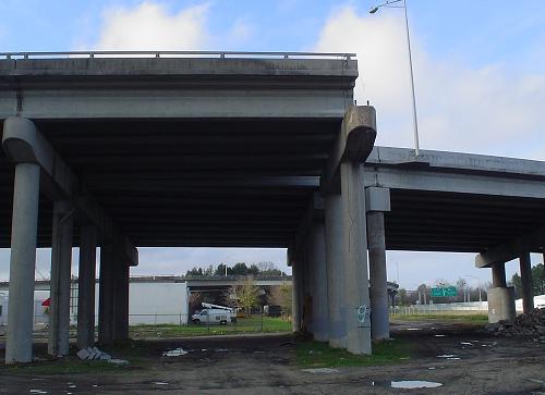 The northbound stub that was the beginning of the Pearman Bridge viaduct. Now, it sticks off the end of US 17 NB as I-26 WB begins along it.
