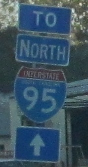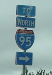 Mathematician's challenge: Multiply each side by the time you get to the split, and pick the one with the lowest third digit. CARRY THE THREE! These are just north of the above southbound shields; the second photo (right side of the road) is mine.