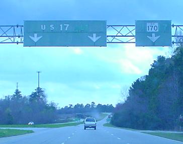 Mmm, demountable button copy. US 17 SB went to the right, where SC 170 now proudly stamps it out, and the left was not just US 17, but US 17 ALT. As you will see, there's an ALT north of here, so maybe SC decided to pare the number of ALT 17's down. This photo is courtesy Lou Corsaro, because I was too impatient to U-turn for my own version.