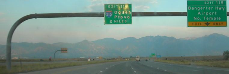 DK- This is the exit from the airport, which becomes UT 154, on the ramp to I-80 EB. It splits for Exit 115, which as the mini-shield (it's all a one-piece assembly) says, is North Temple (not Ave., either, just North Temple), but it's also UT 186.
