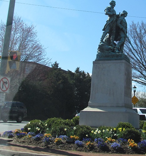 The Lewis & Clark statue sits in the EB Main St. gore at Ridge St.