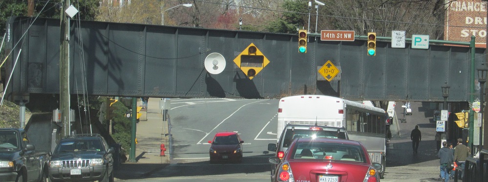 Thankfully, the bus turned onto 14th St. away from the low railroad bridge across Main St. I may or may not be on Business US 250 WB here. I know that Main St. EB is Bus. US 250 EB, but the WB side may be on Preston Ave. here, returning to University Ave. via Grady Ave. to Rugby Rd. The problem is that Charlottesville is an independent city and signs the route along both sets of roads, so the "official" VDOT routing is obscured. To make matters worse, Virginia's GIS shows three separate US 250s: the bypass on US 29, the business route, and a regular 250 that parallels it. At least VDOT thinks I'm on Business 250 here.