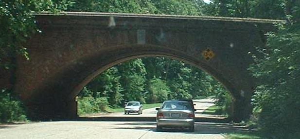 Part of the design stipulation for the Parkway was having all structures fit with the environment, somewhat like the Merritt Parkway in Connecticut, which pretty much translates to brick and stone. The tunnel is underneath the heart of Colonial Williamsburg, captured here facing NB from the end of VA 132Y (a short parking lot connector running to VA 132).