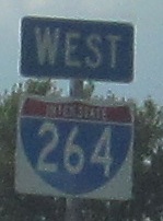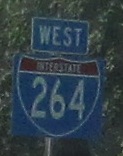 The advance sign for the C-D road exit, which should say "Exits 15-14-13" in a long plaque at the top. There's a loop ramp to I-64 Inner/clockwise from the C-D road, but a direct left ramp from I-264 is intended for mainline traffic to separate the flow from the crowded C-D road.