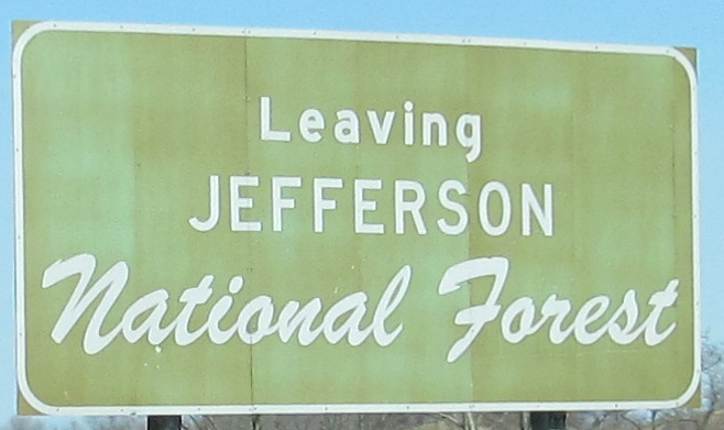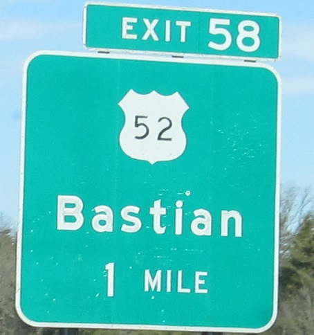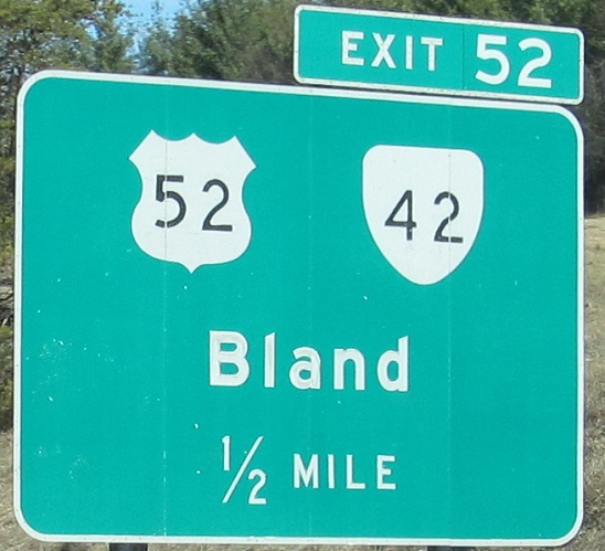 This time, the forest sign is on the correct side of the road. Note that Exit 52 is US 52, and note the strange font for the ampersand in the last sign. (Not that the whole sign isn't strange.)