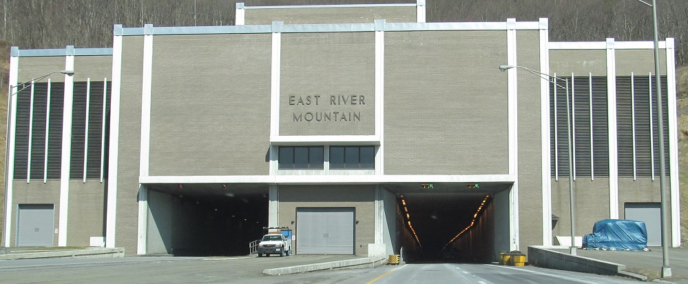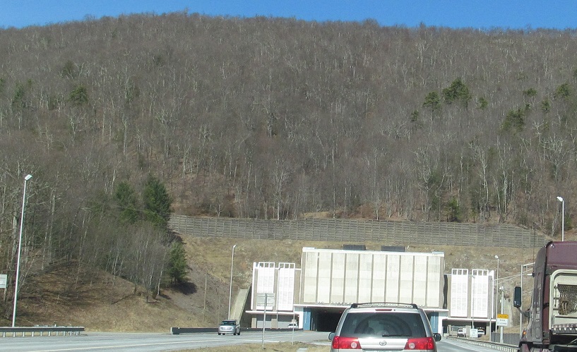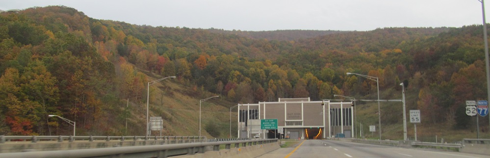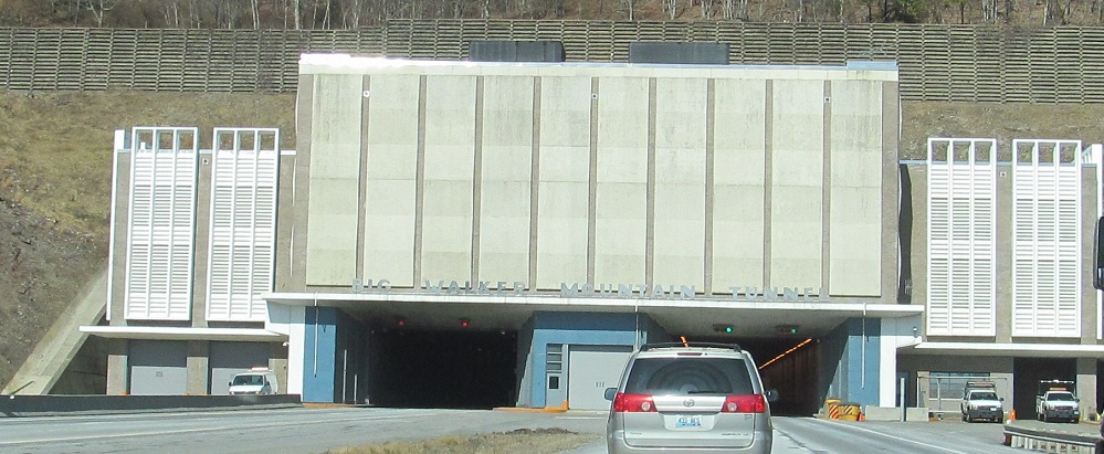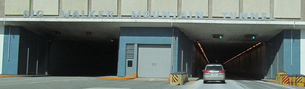 The second tunnel takes I-77 and US 52 to the WV border, which falls halfway through East River Mountain. The letters on this one seem much more modern, but it opened only two years later than Big Walker Mountain in 1974.