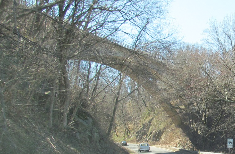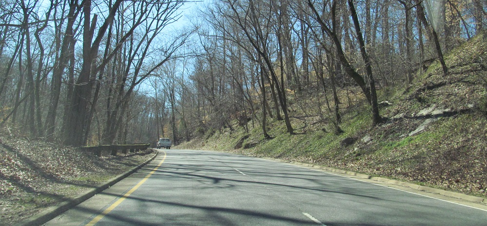 Just after it begins, Spout Run Pkwy. crosses under the SB side of George Washington Memorial Pkwy., the highway that just spawned it. There's no connection from G. W. Pkwy. SB to Spout Run Pkwy. SB, and in fact no SB connection that stays inside Virginia from VA 123 to US 50, a distance of over five miles. Spout Run Pkwy. would have been a great place to break that up, but the topography of the Potomac River hillside got in the way, along with the neighborhood and Civil War ruins at Fort C.F. Smith Park just to the west.
