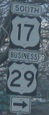 US 211 begins along Business US 29, technically right where Business US 211 breaks off with Business US 15, but signed as if it's several hundred feet later. Once again, US 17 is still signed without a Business banner, but now I can let you in on a secret - this was regular US 17 far more recently than US 15 or 29 ever hit a traffic light, so any assembly more than a few years old can hide behind that excuse.