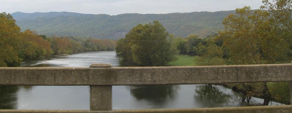 More of the Shenandoah Valley, with a look at the mountain range to the west, then crossing the South Fork of the Shenandoah River and looking east and west.